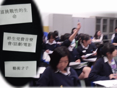 每個人對「理想生活」都有不同的期望。這期望源自我們的價值觀; 而價值觀是左右我們選擇的最關鍵因素之一。假設你擁有一百萬元參與這個拍賣遊戲, 你會如何分配以投得你最想要的東西? (可投多於一項) |